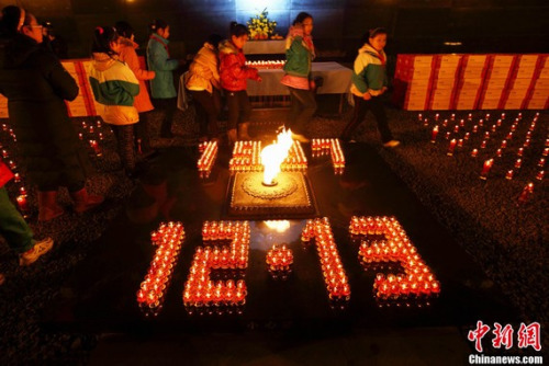 南京师生代表共为南京大屠杀遇难同胞秉烛守灵。