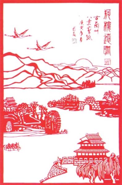 叶长友剪纸:古八景之河楼远眺兰州