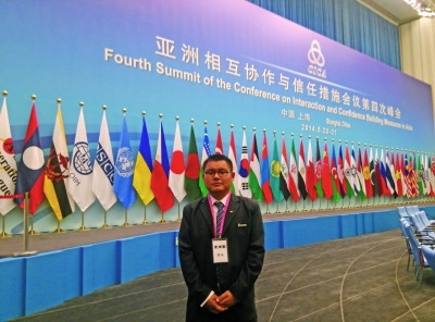 5月21日,亚洲相互协作与信任措施会议第四次峰会(亚信峰会)在上海举行。如今,亚信峰会已经闭幕,但徐州沛县司法局政法干警武为却“意犹未尽”。原来,身为“仿真演练志愿者”的武为,在亚信峰会扮演柬埔寨首相洪森,不仅坐上了首相专车,还“参加”世博中心圆桌会议并“发言”。