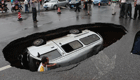 桂林交通要道塌陷致小车掉进大坑