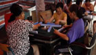突降暴雨 众人街边卷裤腿打麻将