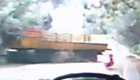 实拍惊险车祸 摩托车惊险穿夹缝