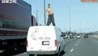 实拍:美女高速公路车顶上热舞