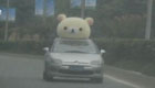 小熊气球上车顶 开在路上萌死人