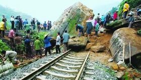 贵州境内山体塌方 逼停火车