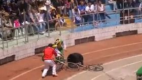 黑熊猛咬“挡道”猴子 3人“使劲劝架”