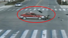 女子骑电动车闯红灯被撞飞