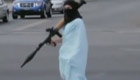 男子假扮恐怖分子 闹市区扛火箭弹