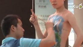 女孩坦胸露背任由异性作画