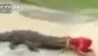 实拍鳄鱼表演失控 表演者鳄口逃生