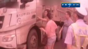 烟台大货车拒绝检查 直撞警车
