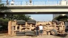 西安渣土车旋转180度侧翻