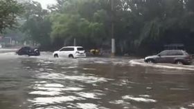 沈阳暴雨 街道成河小车淌水