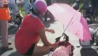 女子高温天受伤倒地 路人撑伞救人