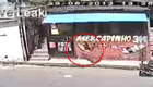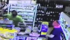 监拍劫匪抢劫杂货店被扔出窗外