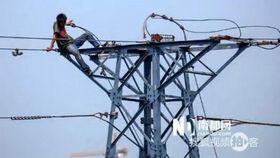 男子爬高压线塔 市民用望远镜观看