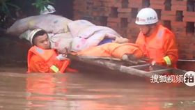 洪水围困民房 齐腰水中救重病老人