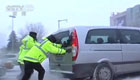 长春暴雪 交警推车