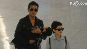 孙俪一家现身机场 邓超抱熟睡儿子变奶爸