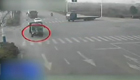 监拍女子闯黄灯被货车撞飞10余米