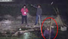 男子发现鸭子被冻湖面 跳湖破冰救援