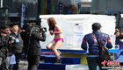 美女主持人直播球赛 被足球砸中脑袋