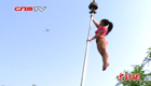 中国钢管舞国家队员借吊车探索新舞姿