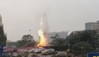 实拍:煤气管被挖断起火 火焰高达十米