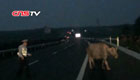 大水牛高速公路"逆行" 民警牵牛物归原主