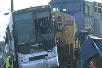 美国一火车与大巴相撞