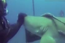 鲨鱼求救 让潜水员拔出体内鱼钩