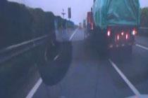 轮胎迎面飞来砸车吓坏司机