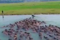 四川蓬安上演“百牛渡江”生态奇观
