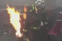消防员火场拎出"喷火炸弹"