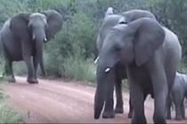 大象拖家带口猛追游览车