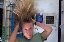 女宇航员演示太空中洗头