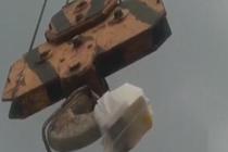 工人师傅用塔吊取外卖