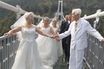 八旬老人玻璃桥上拍婚纱照