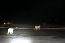 北极熊在机场跑道奔跑