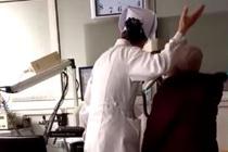护士为老人做检查动作浮夸