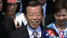 【解说】在前往谢氏宗祠“五常堂”的道路两旁,随处可见夹道欢迎的乡亲,谢长廷夫妇也不停地向乡亲挥手致意。