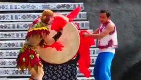 苗族“猴儿鼓”表演逗乐观众