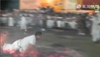 实拍男子洗火炭浴失败爬进“火海”