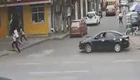 监拍:司机误把油门当刹车 横穿马路追赶行人