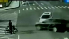 监拍:吉普车顶着越野车疯狂前行 撞飞路人