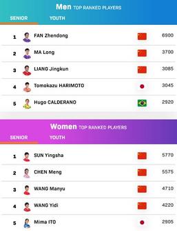 国际乒联更新排名:樊振东、孙颖莎单打世界第一