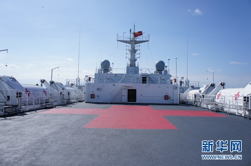 “和平方舟”医院船,在这次演习中作为指挥舰和医疗救援船。曾执行过“和谐使命”系列远航任务。孟彦 摄 图片来源:新华网