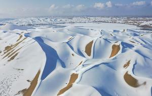 塔克拉玛干沙漠迎罕见降雪